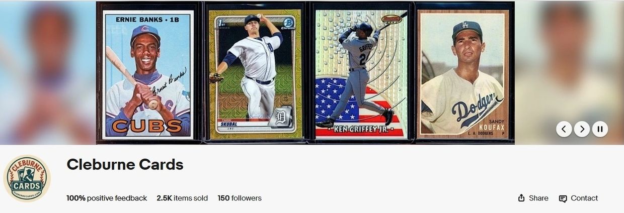 Welcome to Cleburne Cards, where we bring you the best Vintage to Ultra-Modern Baseball Cards and Memorabilia. We offer high grade raw and professionally graded cards, as well as authenticated autographed bats, balls and jerseys of your favorite baseball players.